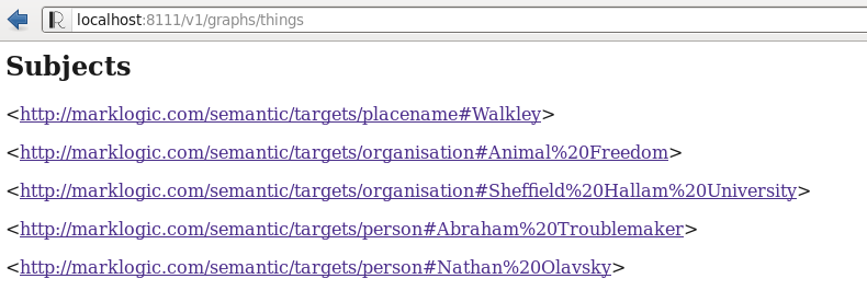 If you hit the MarkLogic 7 REST API endpoint directly, you can browse through the ‘things’ defined:-