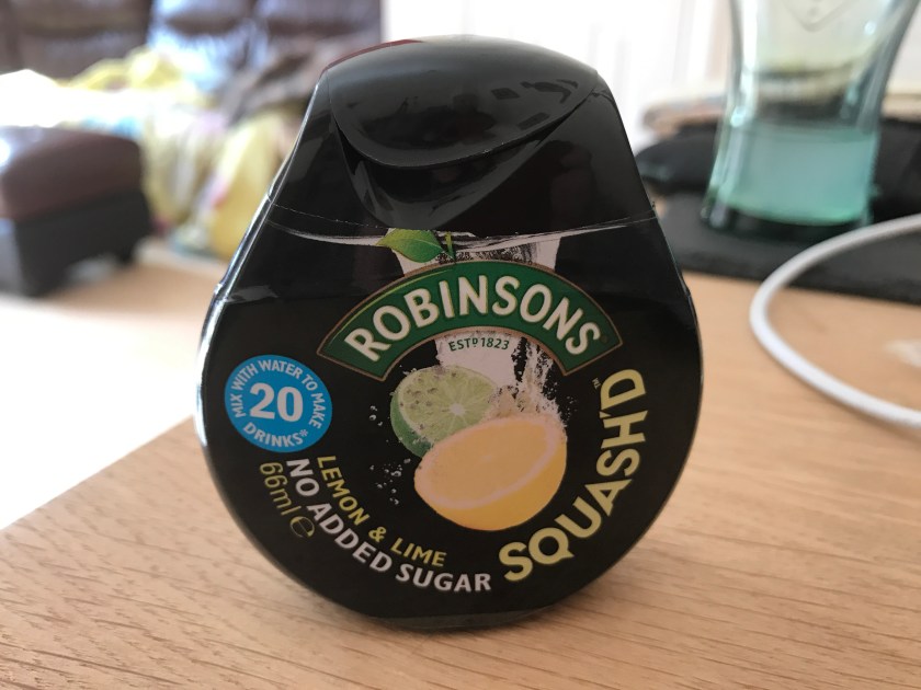 I do occasionally still have fizzy drinks. I’ll have a Fanta Orange or Tango Orange every 2-3 days just to remove the monotony of water. I have found the Robinson’s Lemon & Lime “Squash’d” super concentrated, low calorie, drink additive to be very useful (shown above). You can also carry this to work easily. This helps with water boredom. Apparently Lemon helps the body cleanse itself too, so an added bonus there.